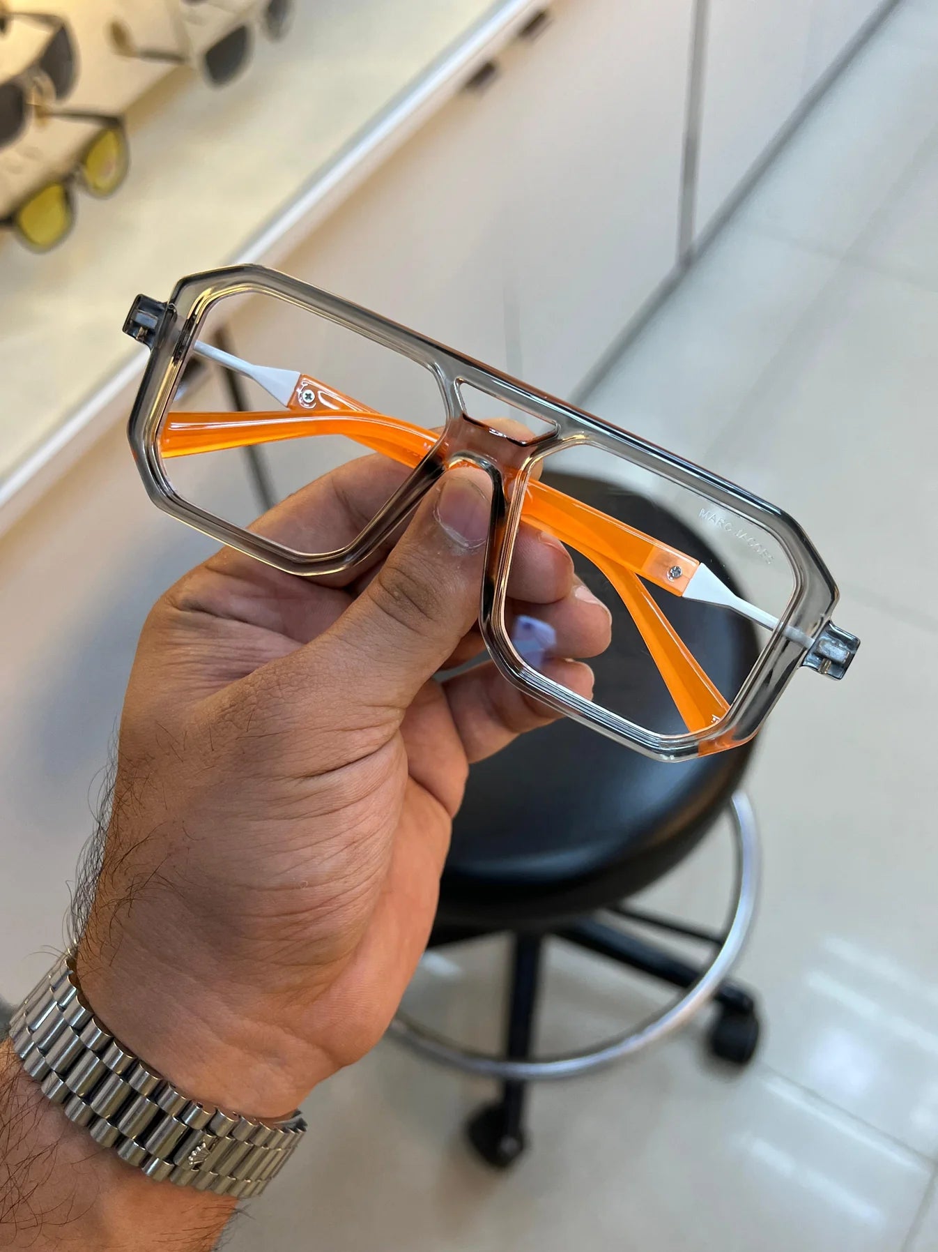 • Frame Shape: Oversized square / geometric